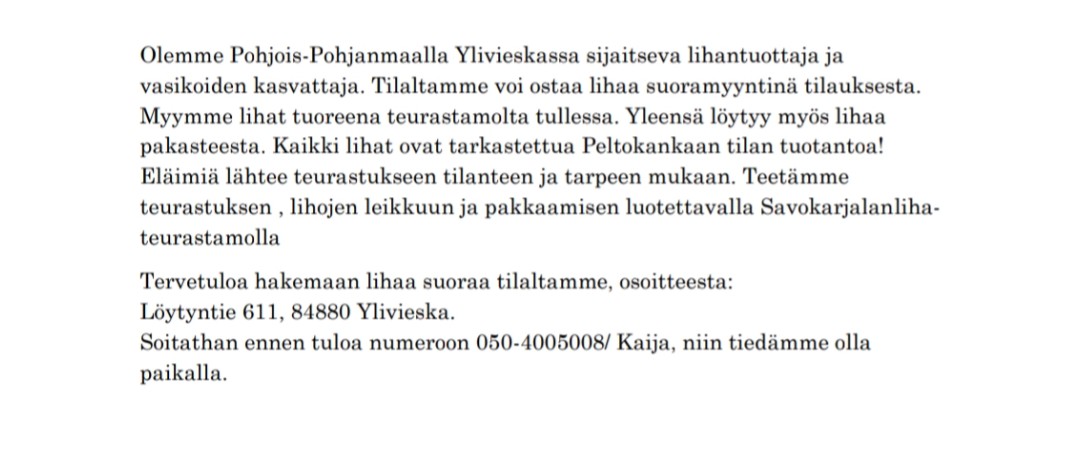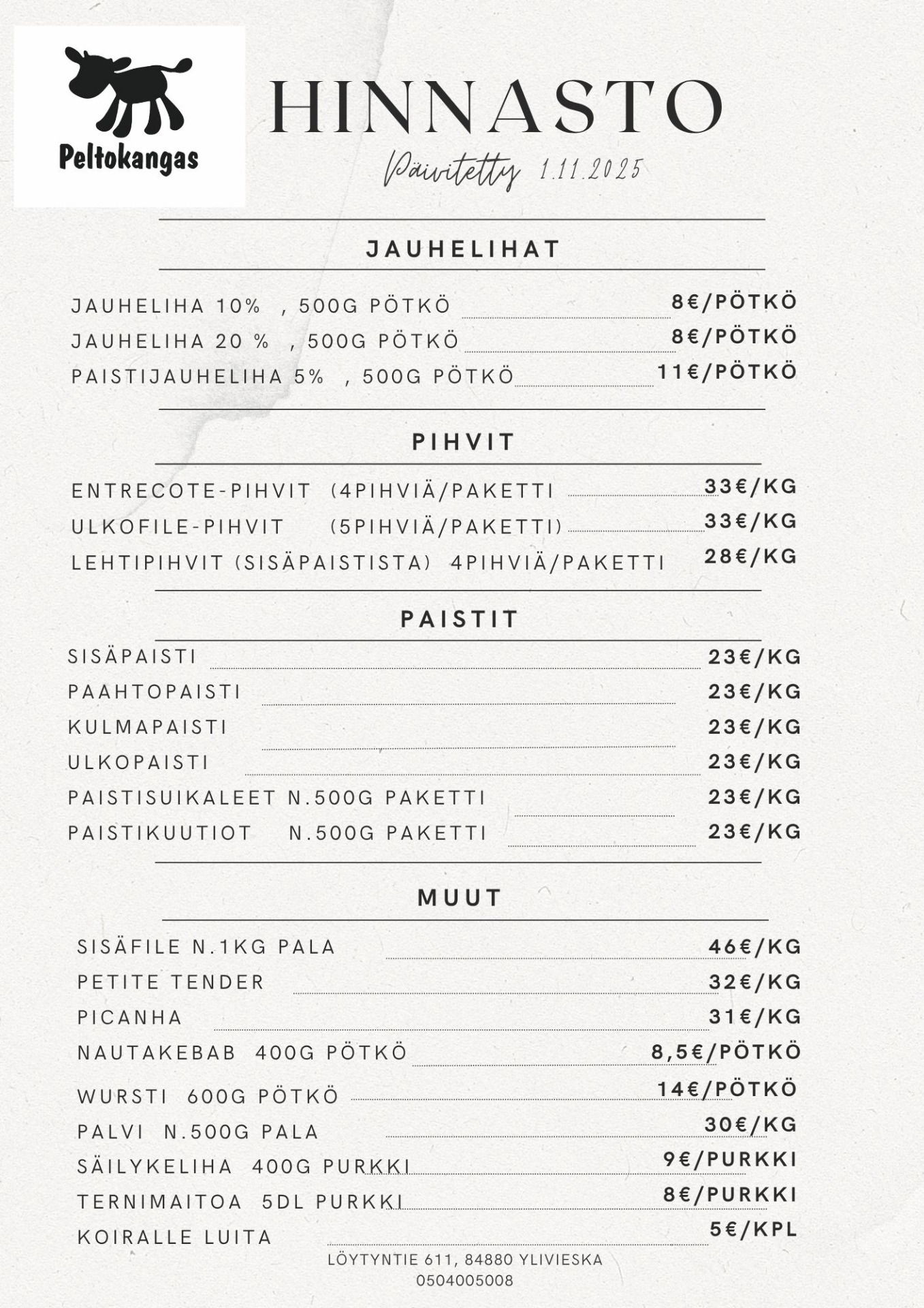 Keväällä 2025 valmistui meille lihan suoramyyntitilat vanhaan autotalliin. 9.5.2025 saamme ensimmäisen lihaerän myyntiin